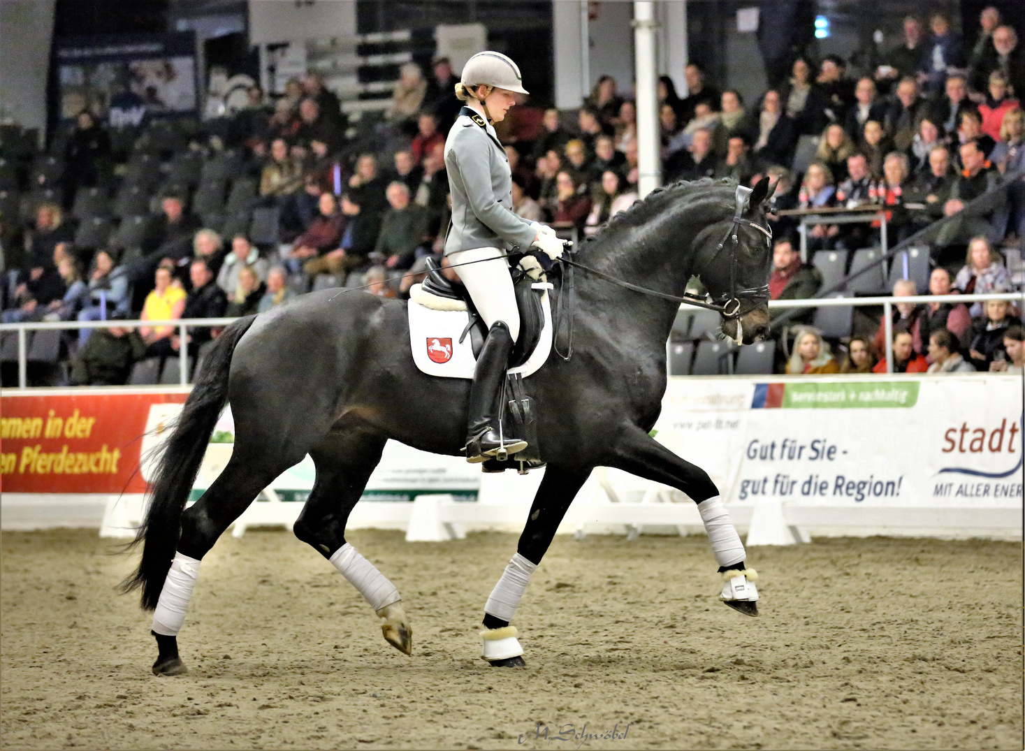 The silhouette of this modernly styled premium stallion deserves superlative attributes, and his three even gaits were completely convincing at all presentations in Verden: always rhythmic, ideally and powerfully using the hind leg, always balanced and uphill – a truly majestic appearance in Verden!