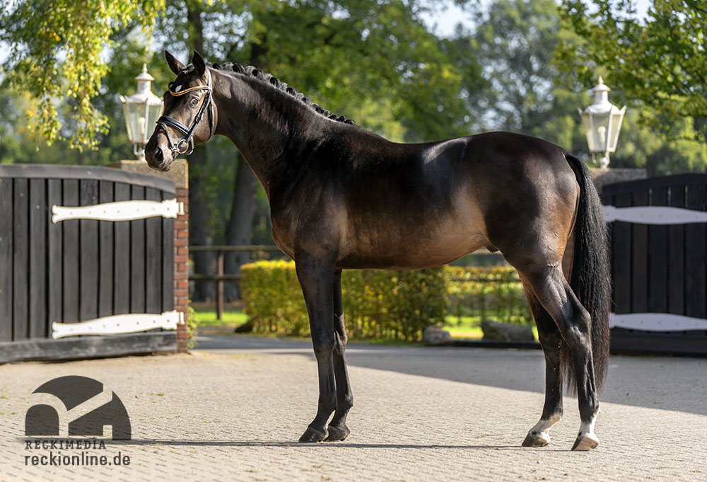“This strong type stallion was licensed in Neumunster in 2019 (at 2 ½ yrs old) and successfully completed his 35-day test in Denmark in Nov 2021. Particularly noteworthy are the flawless exterior and the stallion’s expansive canter. Heaven Dancer descends from one of Denmark’s most successful mare lines, ‘Herba’, to which the well-known stallions ‘Blue Hors Hertug’ and ‘Herakles’ can also be traced back. (reference Trakehner Verband Germany Lars Gerhman.)”.